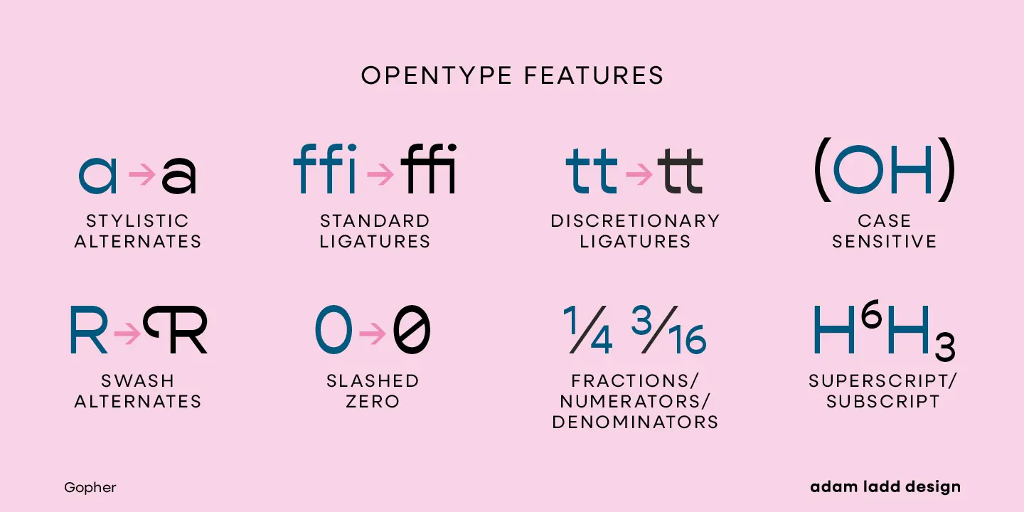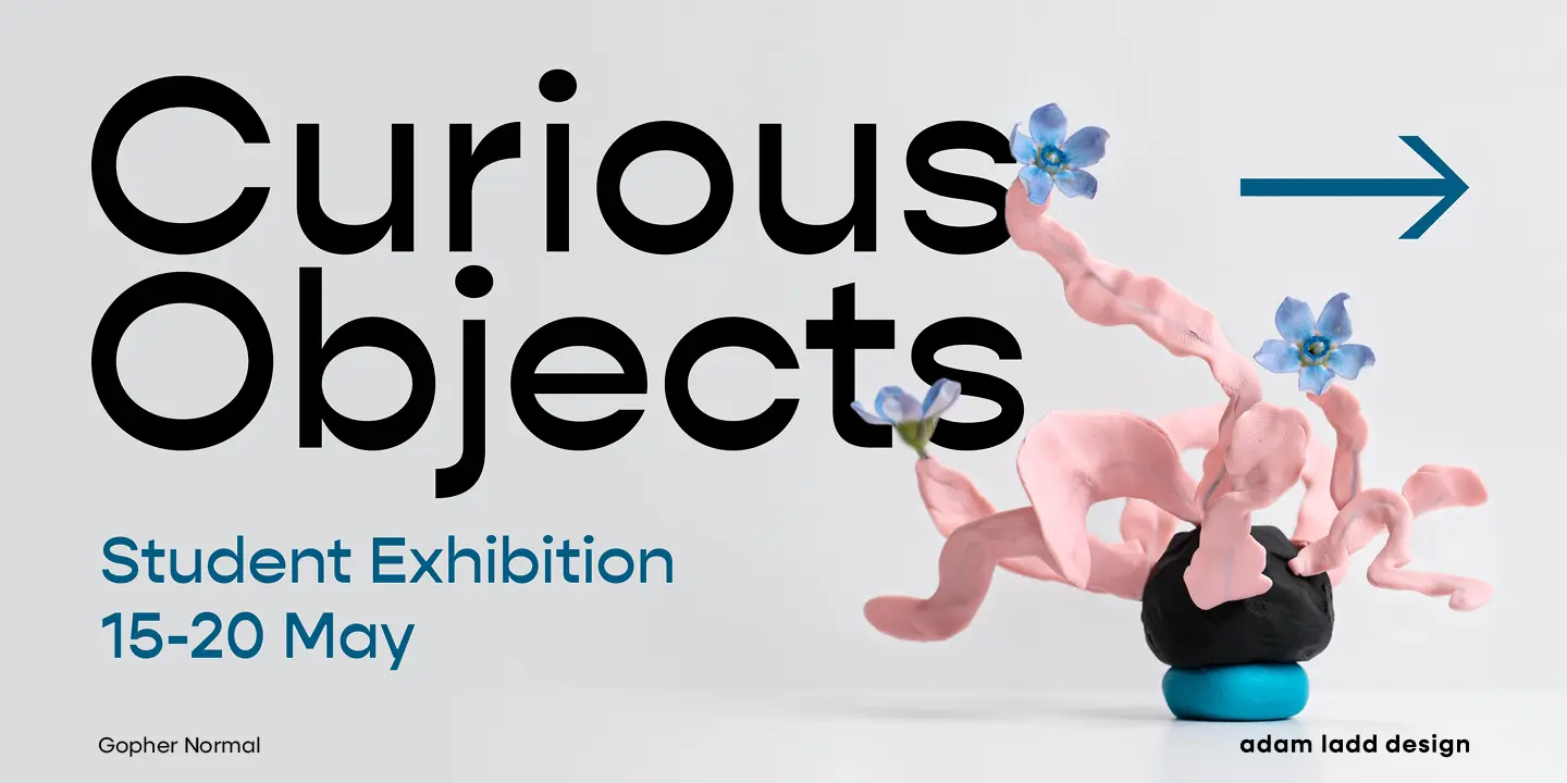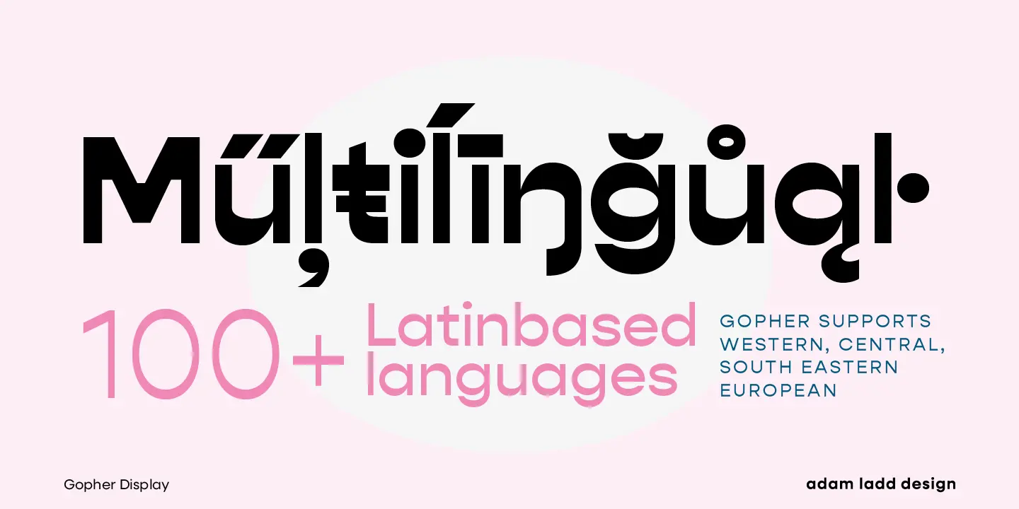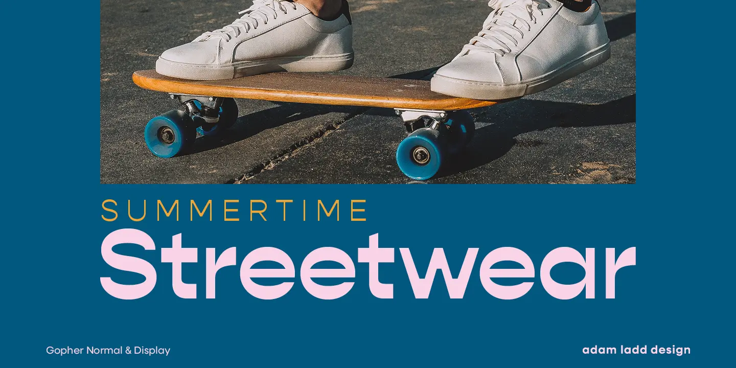 Gopher, Gopher Text, and Gopher Display comprise the families in this modernly quirky take on the reverse contrast, geometric sans. A variation in the amount of contrast distinguishes the three separate families while allowing them to work in harmony together. A generous range of dramatic affect adds to the versatility with Text having the most minor contrast and Display the most for immediate visual impact. The 48 included styles in the complete family range from hairline to heavy and italics.