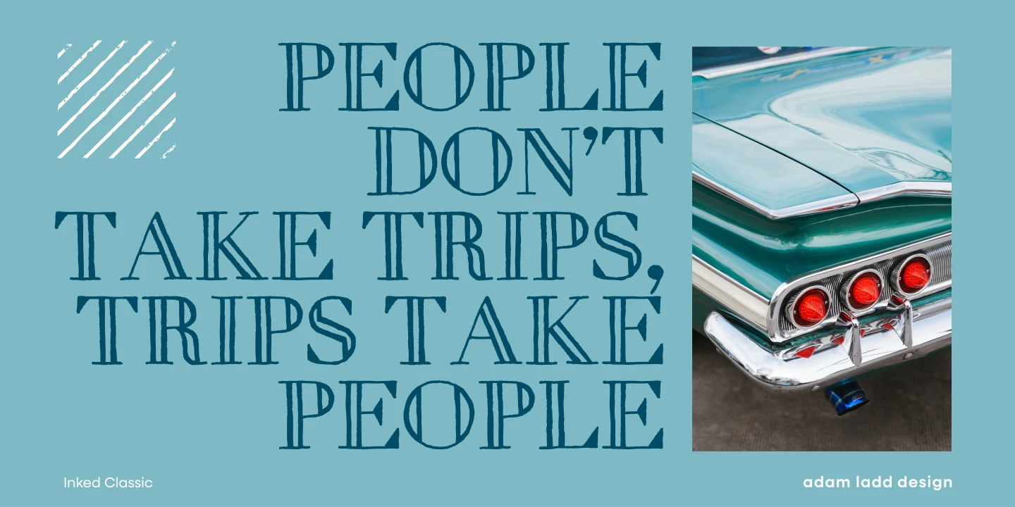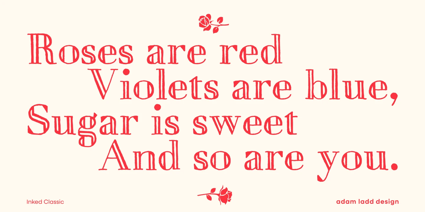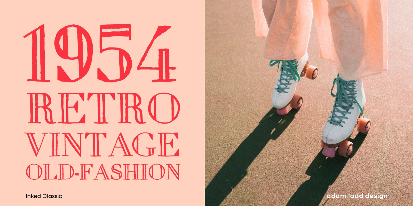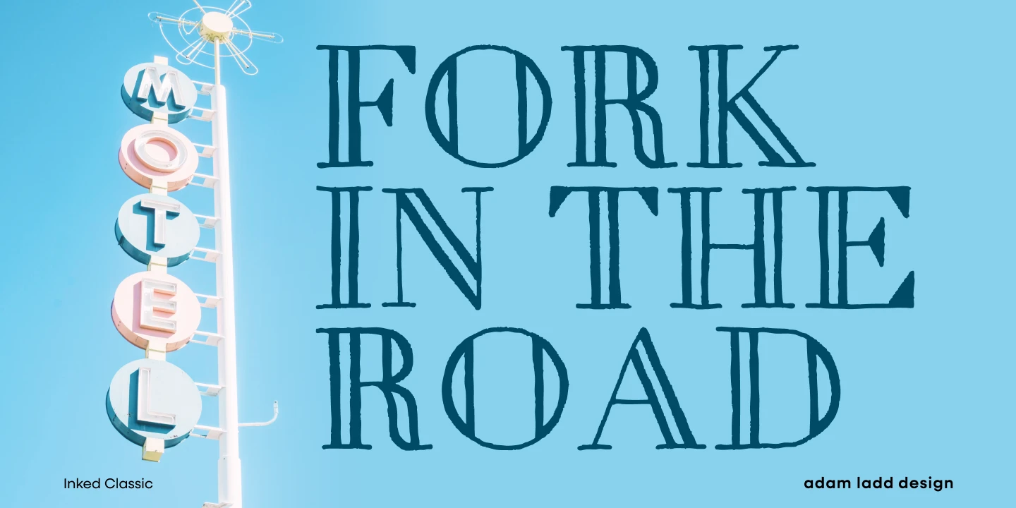 Combining the dignity of a modern openface Didone with hand-drawn charm, Inked Classic evokes nostalgic elegance. It lends warmth to typographic circumstances requiring more than cold perfection. The design ensures legibility when used in small sizes, such as wine labels or party invitations. But the harmonious interplay of elements is undeniably present at display sizes, such as on book covers or magazine spreads. Select Inked Classic to infuse your next project with an air of bygone appeal.