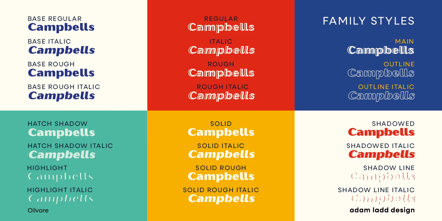 | Oilvare Outline Family Styles included • Regular • Regular Italic $44.99 |